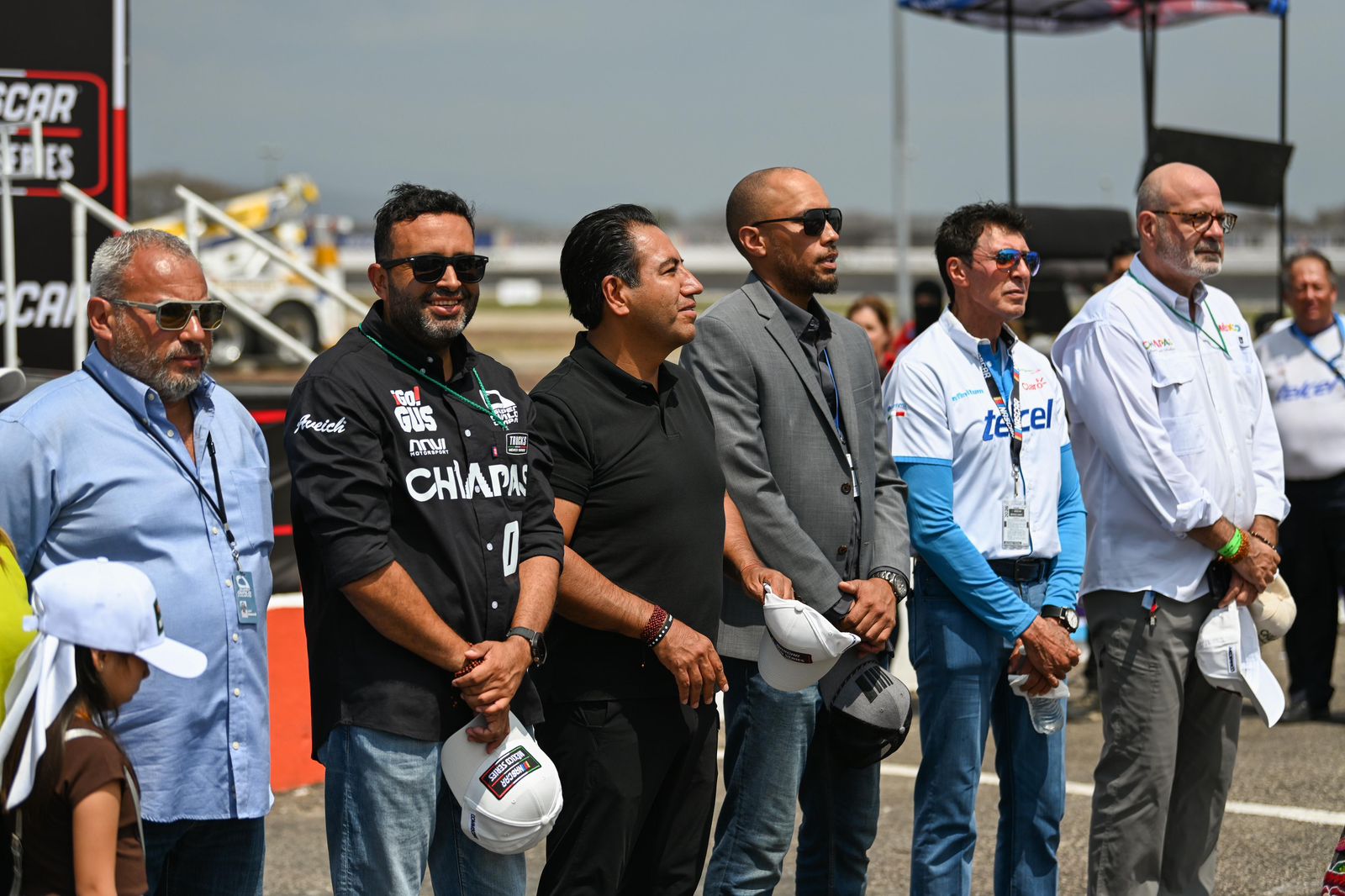 Acompañaron al gobernador la señora Sofía Espinoza Abarca; su hija, Grecia Ramírez Espinoza; el secretario de Turismo, Segundo Guillén Gordillo; así como representantes de la Nascar México Series, entre otros.