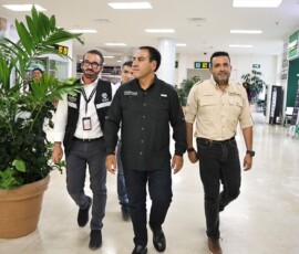A este recorrido acompañaron al gobernador el director general y administrador aeroportuario de la Sociedad Operadora del Aeropuerto Internacional Ángel Albino Corzo, Antonio Noguera Zurita; y el director general del Instituto de Seguridad Social de los Trabajadores del Estado de Chiapas, Luis Ignacio Avendaño Bermúdez.