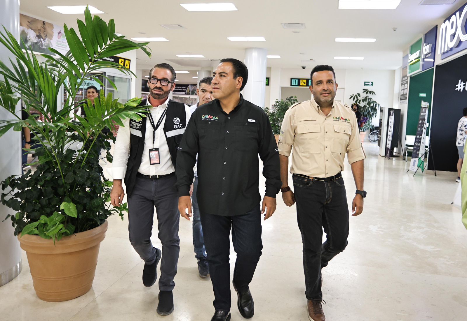 El gobernador Eduardo Ramírez Aguilar recorrió las instalaciones del Aeropuerto Internacional Ángel Albino Corzo, donde supervisó las acciones de mejoramiento y embellecimiento de diversos espacios, y destacó que Chiapas se encuentra preparado para recibir a visitantes nacionales e internacionales.