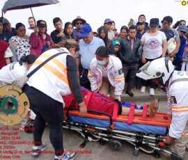 El primer caso correspondió a un hombre de 60 años, Bruno “N”, quien fue localizado consciente y con dolor cervical, cefalea y signos de traumatismo en la zona del cuello, por lo que fue trasladado en ambulancia para una valoración médica especializada y descartar complicaciones mayores.