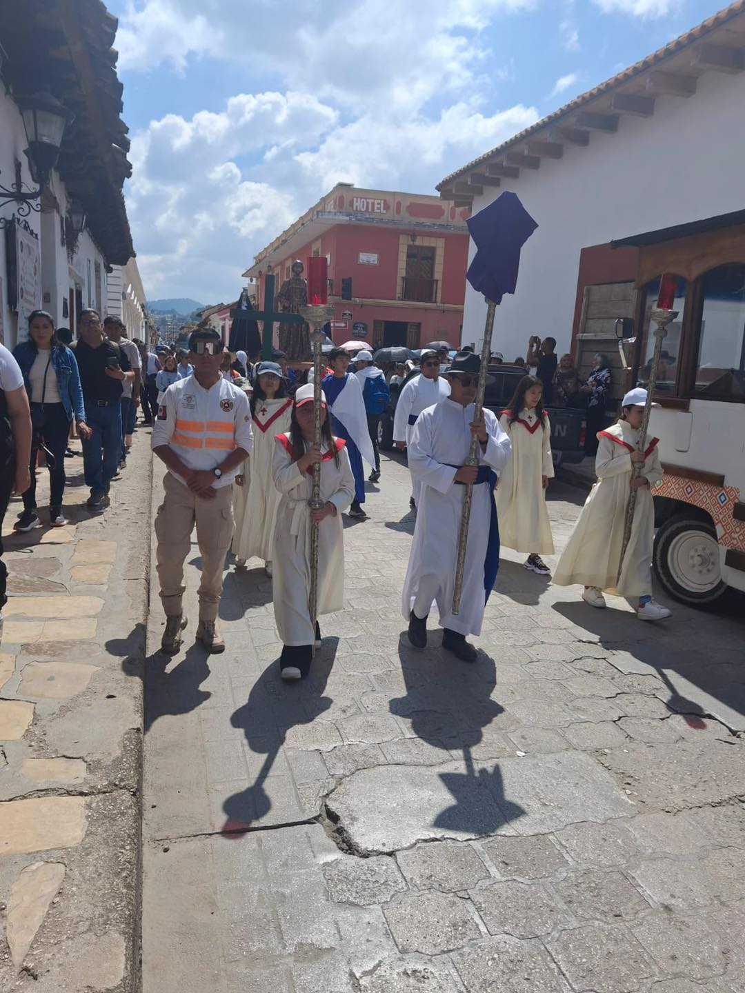 Elementos del Centro Regional de Protección Civil y Bomberos brindaron dos atenciones médicas prehospitalarias durante el viacrucis realizado en el Barrio de Mexicanos, como parte del operativo de seguridad implementado ante la concentración de asistentes.