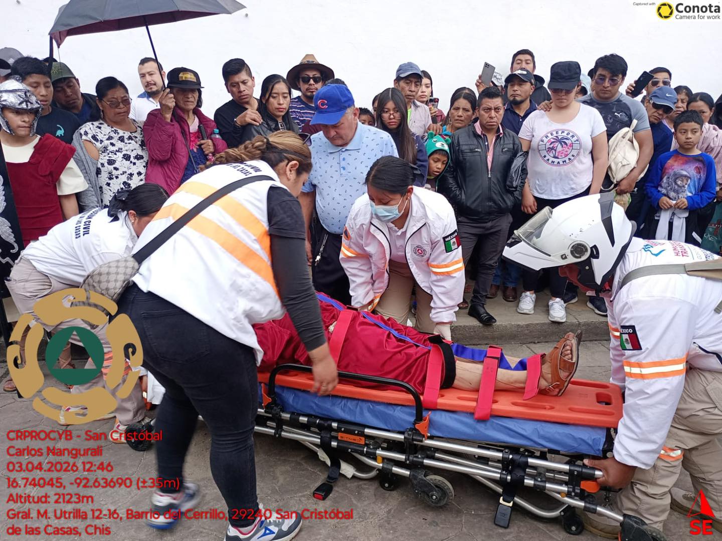 En el segundo incidente, un joven de 28 años, Héctor “N”, que participaba en la representación de Jesucristo, presentó deshidratación moderada y lesiones por fricción en la espalda y extremidades superiores. Fue atendido en el lugar con hidratación intravenosa, logrando estabilizar sus signos vitales sin requerir traslado hospitalario.