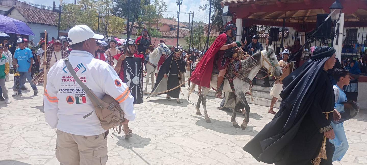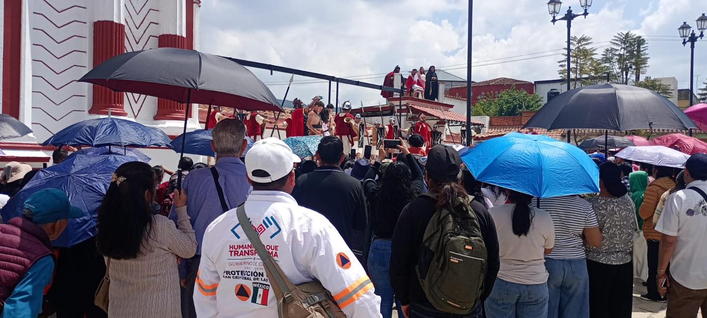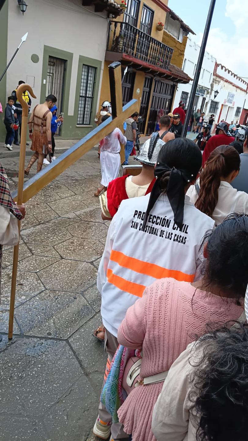 Personal de Protección Civil atiende a dos personas durante viacrucis en San Cristóbal