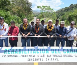 En Simojovel, visitó la localidad Pauchil Dos Los Cocos, donde entregó la rehabilitación del camino Simojovel-La Pimienta, con una inversión de 11.5 millones de pesos en beneficio de 18 mil habitantes. Posteriormente, inauguró el camino E.C (Simojovel-Pueblo Nuevo-Sitalá)-San Francisco Portugal-El Jardín, en el que se destinaron más de 14.6 millones de pesos a favor de 19 mil habitantes, así como el tramo E.C. (Simojovel-Pueblo Nuevo-Sitalá)-Chalchihuitán, que representó una inversión de 11.3 millones de pesos en beneficio de más de 25 mil personas.