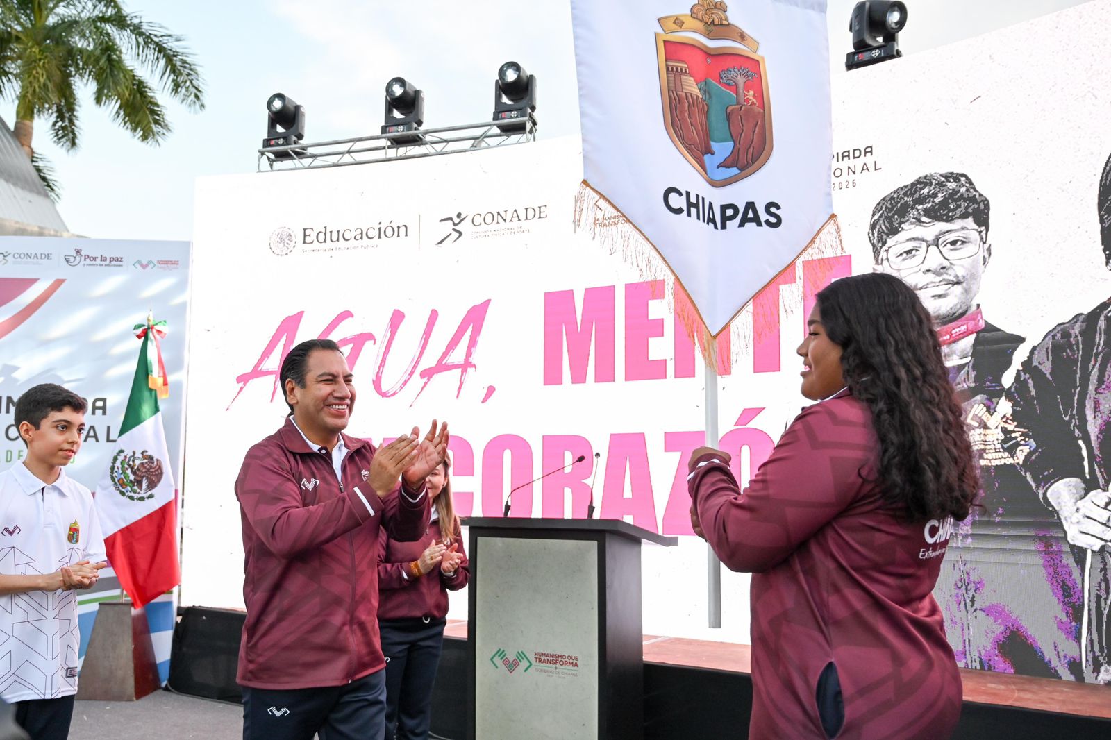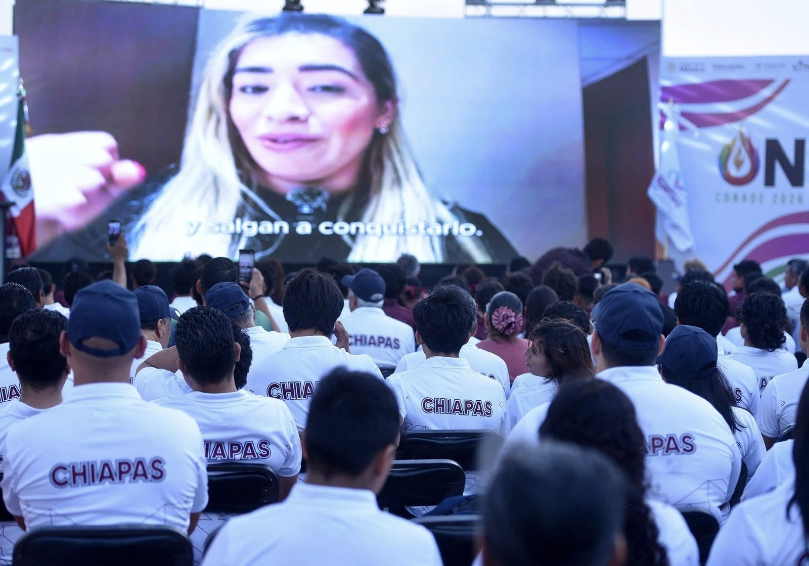 El gobernador Eduardo Ramírez Aguilar encabezó la ceremonia de abanderamiento de la Delegación Chiapas que participará en la Olimpiada Nacional Conade 2026. En este marco, reiteró el compromiso del gobierno de la Nueva ERA de respaldar al deporte chiapaneco y deseó éxito a las y los atletas, a quienes convocó a competir con garra, mente y corazón para alcanzar sus metas y poner en alto a Chiapas a nivel nacional.