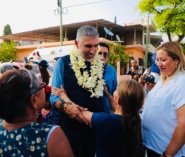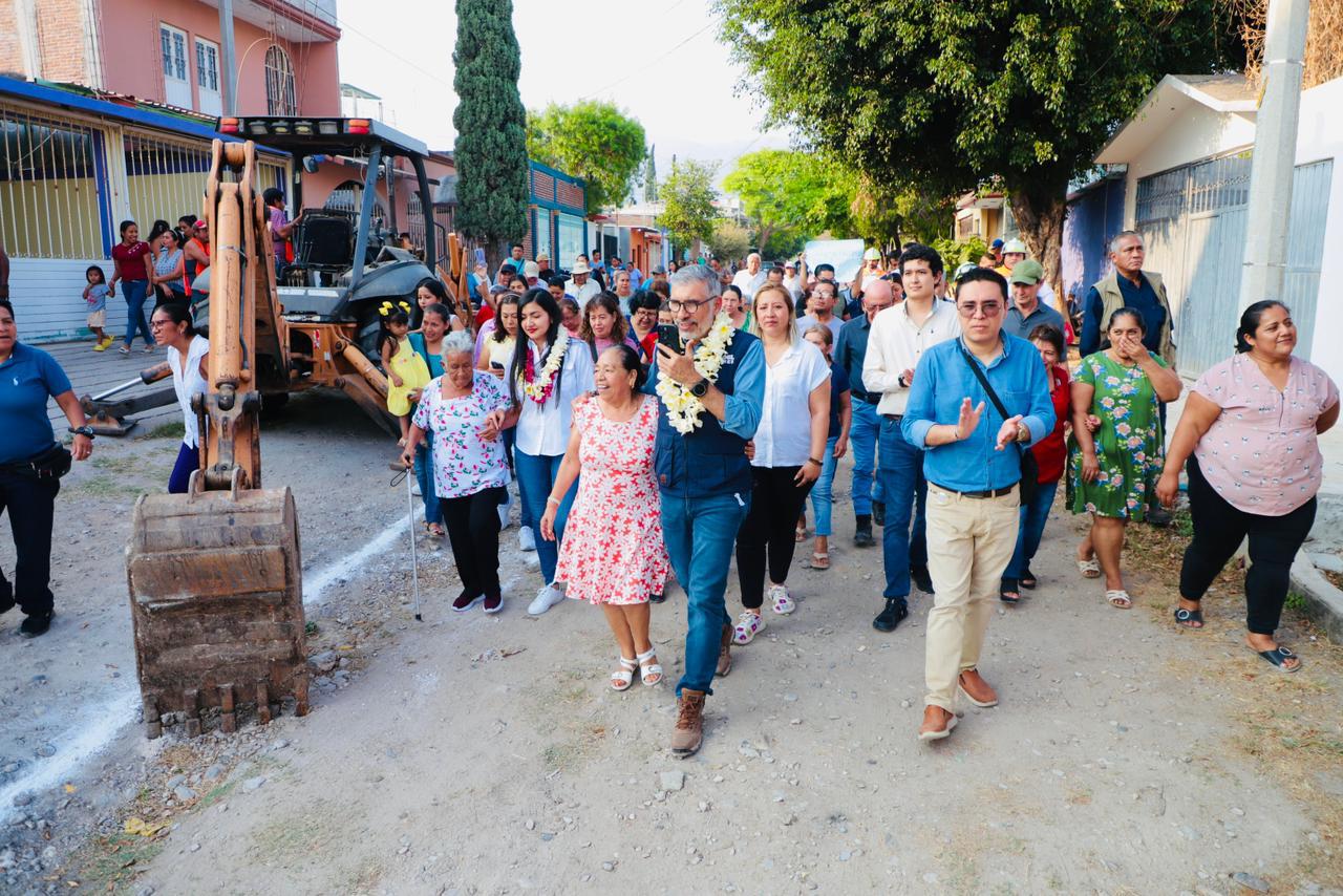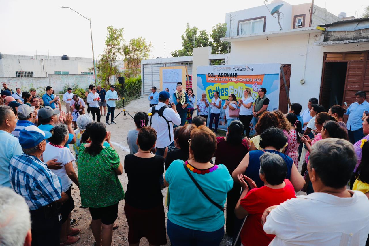 Con porras y muestras de respaldo fue recibido el presidente Angel Torres al llegar a la colonia Adonahí para dar el banderazo a los trabajos de pavimentación de la calle San Bartolomé, como parte del programa Calles Felices, el cual continúa llegando a colonias, barrios, ejidos y fraccionamientos de la capital.