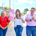 Al inaugurar la pavimentación integral de calles en 20 calle Oriente entre 13 avenida Sur y 19 avenida Sur de la colonia Calcáneo Beltrán de esta ciudad, la presidenta municipal de Tapachula, Rosa Irene Urbina Castañeda refrendó el compromiso de los Gobiernos de la Cuarta Transformación de seguir avanzando con la entrega de obras que beneficien a las familias tapachultecas.