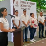 Con la representación de la presidenta municipal de Tapachula, Gladiola Soto Soto, la titular de Juventud y Deporte, Paulette Monserrat Sandoval Tapia, inauguró las actividades del curso que durante tres semanas se desarrollarán en las instalaciones del Parque Recreativo Los Cerritos de esta ciudad, gratuitamente.
