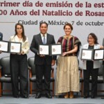 Acompañado por la directora general de Correos de México, Violeta Giorgina Abreu González, y el analista académico y consultor Gabriel Guerra Castellanos, hijo de la escritora, Ramírez Aguilar agradeció la emisión de esta serie de timbres postales que honra y visibiliza a una chiapaneca ilustre, pionera en la política, la diplomacia y la literatura. Subrayó que con la histórica llegada de Claudia Sheinbaum Pardo como primera presidenta de México, también se simboliza la presencia de Rosario Castellanos y de todas las mujeres que han abierto camino.