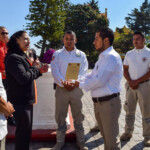 Fue durante el homenaje a la bandera que, de manos de López Martínez y de María Recinos López, síndica municipal, se entregó este distintivo por los cuidados recibidos de los paramédicos cuando pidieron su intervención para salvaguardar a la afectada, quien había caído dentro de una fosa séptica en construcción, aproximadamente a 2 metros de profundidad.
