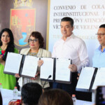 Durante la firma de este convenio suscrito por la directora general de la Asociación Civil “Equidad de Género: Ciudadanía, Trabajo y Familia”, María Eugenia Romero Contreras, y el fiscal general del Estado, Jorge Luis Llaven Abarca, el mandatario resaltó el trabajo conjunto entre los tres órdenes de gobierno y los tres Poderes del Estado para su protección, combatiendo la irresponsabilidad de servidores públicos y fortaleciendo la atención y prevención.