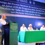Luego de la premiación, durante su intervención, Zoé Robledo, enfatizó que, el programa establece acercar la salud a las comunidades, con capacitaciones, talleres y actualizaciones, por ello, en 2019, se han capacitado a más de mil 492 voluntarios en talleres, y ellos han replicado sus conocimientos a través de 268 mil 510 talleres, llegando a más personas.