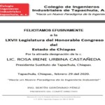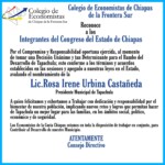 En diversas publicaciones los integrantes del Colegio de Contadores Públicos de Chiapas, Unidad Ciudadana, Coparmex Costa de Chiapas, Colegio de Economistas de Chiapas de la Frontera Sur, Colegio de Ingenieros Industriales de Tapachula, Asociación Mexicana de Mujeres Empresarias Capítulo Tapachula, Colegio de Arquitectos de Chiapas, entre otros; manifestaron su respaldo a la decisión tomada por los legisladores chiapanecos para depositar la titularidad de la administración local en la Lic. Rosa Irene Urbina Castañeda, así también su reconocimiento al Honorable Congreso del Estado.